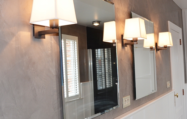 Nous l’appliquons à la spatule, en plusieurs couches, et nous le polissons à la spatule également, pour créer un effet miroir marbré très élégant.